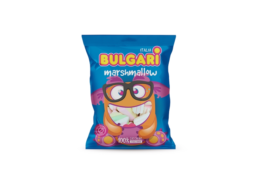 Marshmallow. Zutaten: Glukose-Fruktose-Sirup, Zucker, Wasser, Gelatine, Maisstärke, Farbstoffe: E100, E120, E133, Aromen. Kühl und trocken lagern. Hergestellt in Italien. lieferbar